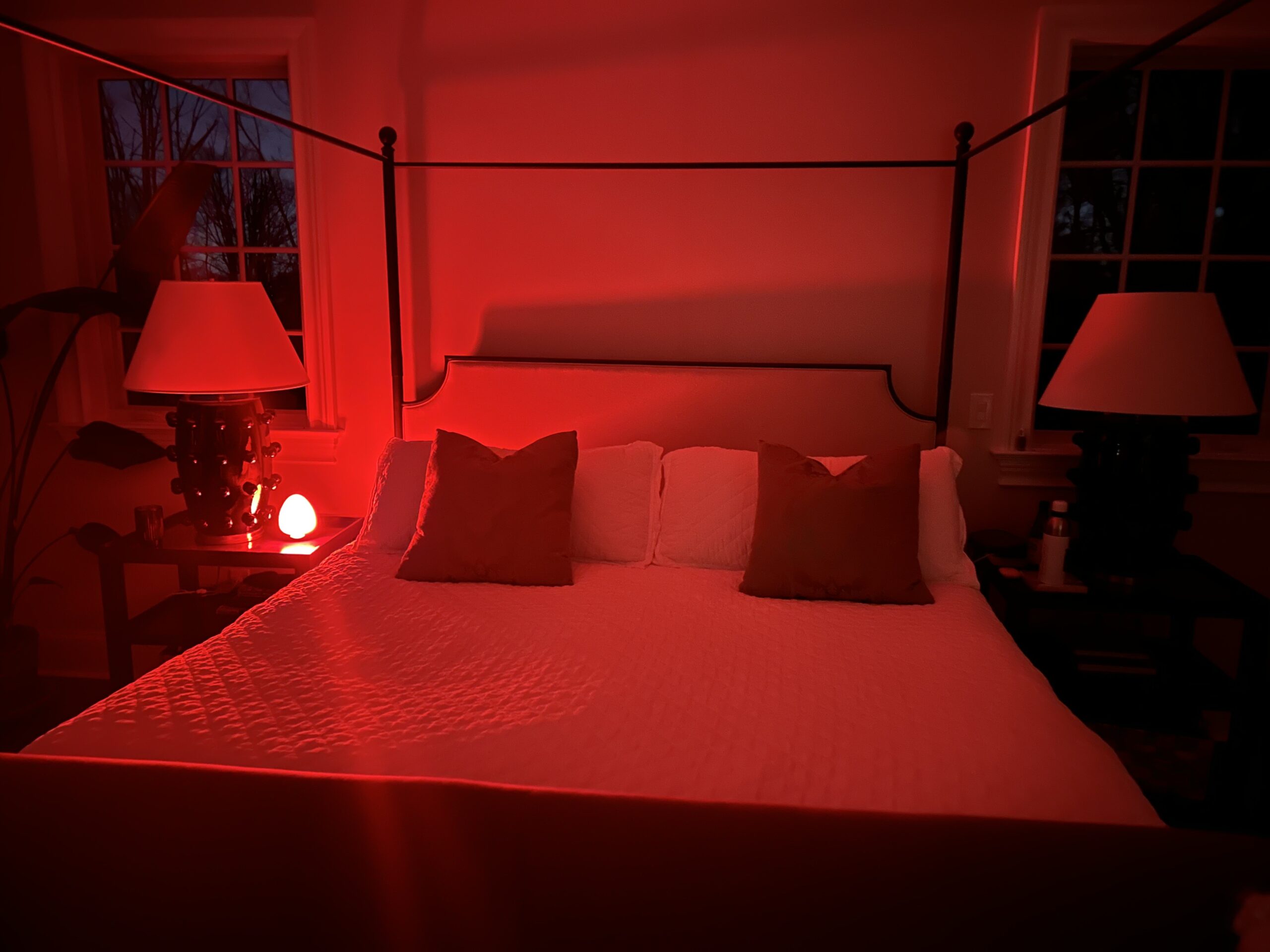 4. Light sources: You can use red LED bulbs, bedside lamps with red filters, or dedicated “mood lighting” options to incorporate red light in your bedroom.